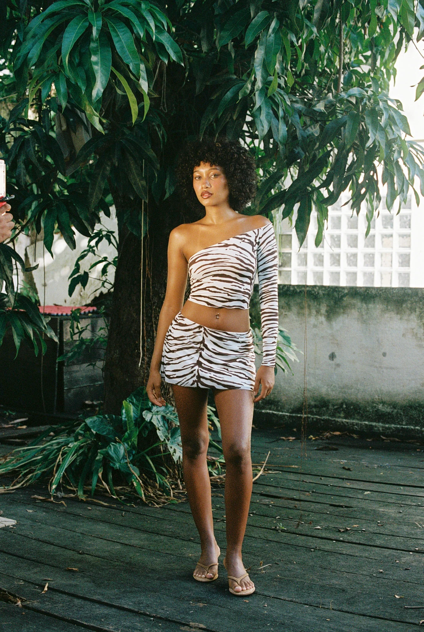Arlo in Kopi Tiger. Sleek yet powerful, this statement top is a modern take on iconic runway looks. Crafted from premium Italian matte tissue supplex and our signature Nelo swim fabric, Arlo is designed for a sculpting yet breathable fit. Fit runs true to size. Lifestyle model Yasmin wears size S. Studio model Selina wears size S.